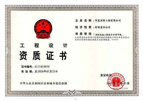 華夏消防工程有限公司 → 設(shè)計甲級專項資質(zhì)證書